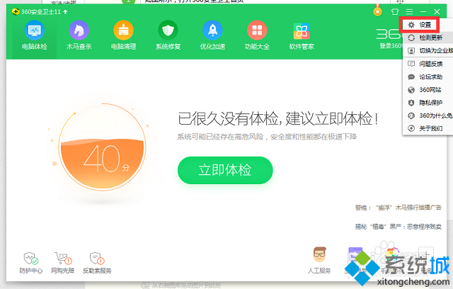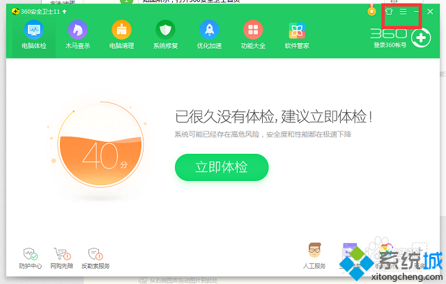 1、首先打开360安全卫士的主界面,打开右上角的菜单图标;